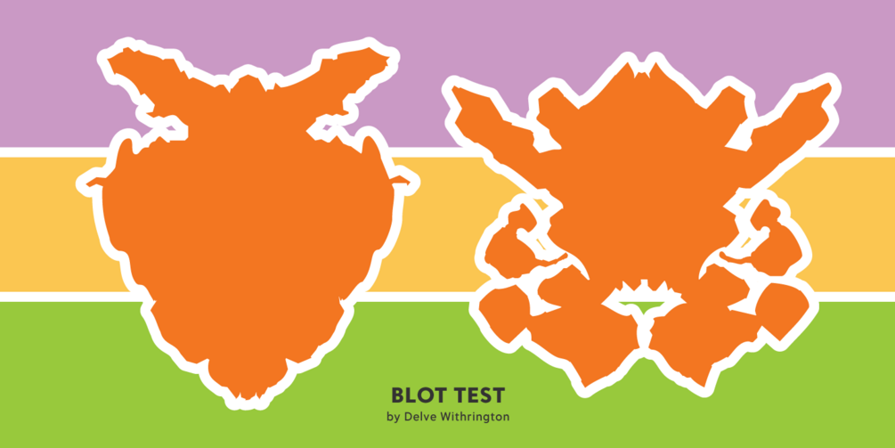 You may draw your own conclusions from these ink blots carefully vectorized from actual ink applied to real paper by the designer Delve Withrington, in the same manner as the original ink blot tests.