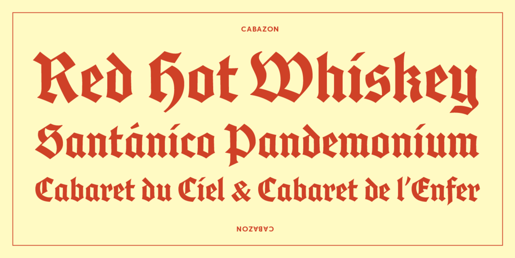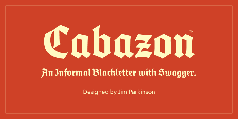 Cabazon is an informal blackletter type Jim Parkinson designed and first published in 2005. In creating Cabazon, Parkinson researched legacy blackletter types and handlettered samples, and early manuscript samples. In particular, Parkinson found works by mid-20th century artists Rudolf Koch, Ross George and Samuel Welo to be inspirational in pursuing his vision for Cabazon.