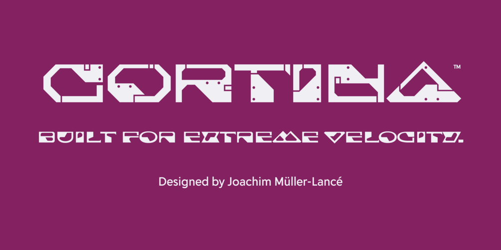 Serendipity often occurs in typefaces from the hand of the award-winning type designer, Joachim Müller-Lancé. The design of Cortina was inspired by a small shape spotted by coincidence: a tiny triangular tab in a software panel that resembled a futuristic ‘A’. Joachim developed the entire concept from this idea into a family of three styles: Cortina Base, Slate, and Plate. Each is modeled on the same conceptual form sharing proportions, but with different features.