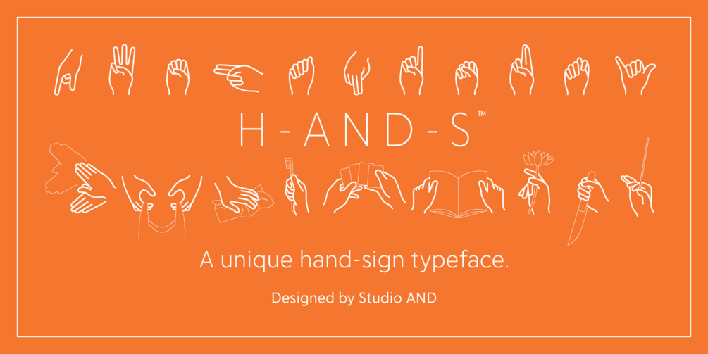 In his travels throughout the world, Jean-Benoît Lévy collected hand-signage that he discovered in various packaging, signage or instruction manuals. More than a decade of research and design on the subject of hand signs resulted in this iconographical typeface and the publication: “Handbook: A book of handsigns” The name “H-AND-S” blends the subject with the name of Lévy’s San Francisco based studio, AND where it was created.