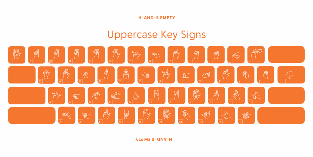 Collecting, redrawing, ordering, unifying. The simple graphical exercise of collecting those signs became step-by-step, a complex signage program. The choice of those signs is based on daily movements and on universal hand codes. Logically, this typeface starts with the “Manual Alphabet for the Deaf” and is mapped to the upper and lowercase keys of the QWERTY keyboard. H-AND-S is the first time so many handsigns were assembled and redrawn in one consistent style. The language of hand-signs is universal. It belongs to no one in particular and to all of us in general.