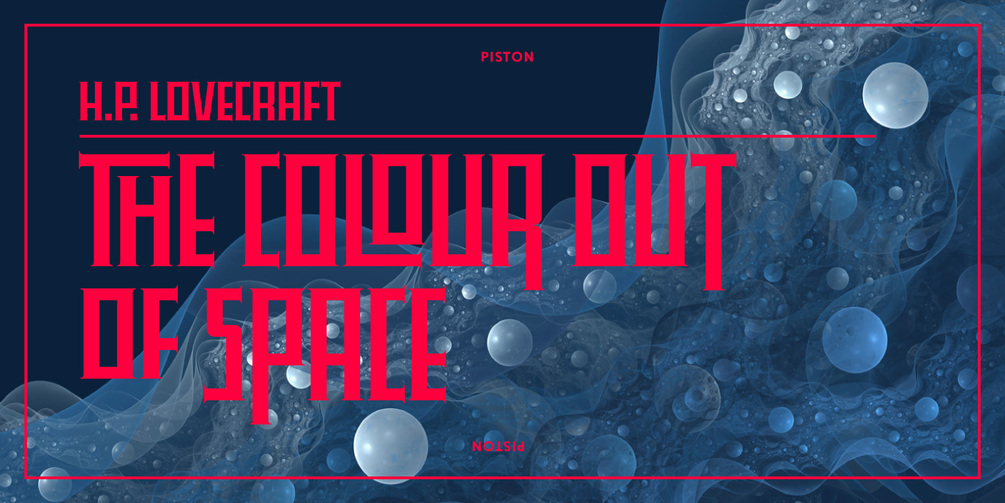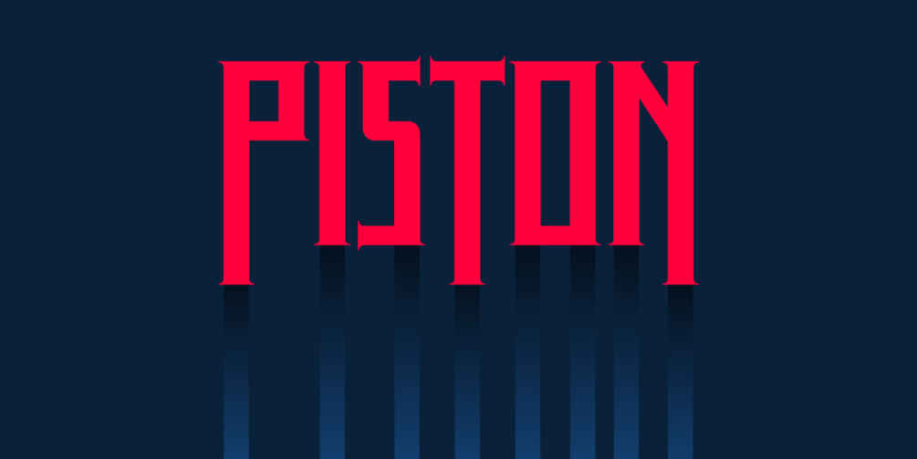 Use Piston big. Convert it to outlines and customize it to your liking by pulling out horizontal or vertical strokes. Pack in some horizontal bars where it makes sense. This typeface is great for logos, movie posters, magazines, book covers, toy packaging, cars, tools, cookware, and much more.