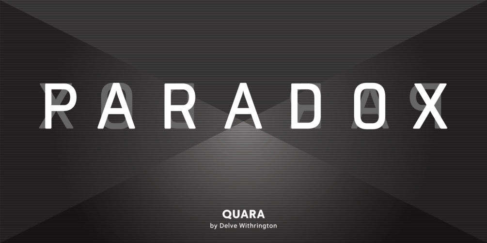 Quara is a design that takes its cues from cutting-edge technology and new gadget lust. Quara enjoys short downloads on the web, long walks on mobile devices, and romantic dinners by LED light. An avid gamer (esp. MMORPG) and science fiction fan, Quara longs to be the first font in space and have its pixels scattered among the stars. Quara was designed by Delve Withrington.