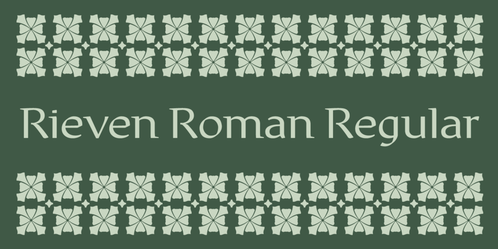 Designer Steven Skaggs expanded the Rieven family by creating a Roman version that can be used hand-in-hand with its predecessor, Rieven Uncial. Although they share some glyphs in common, the key differences include: replacing the uncial-specific forms in U, a, e, f, and r with more conventional forms. Curved strokes in h, m, n, u, v, and w were revised to be straight. More subtle adjustments were made to g, s, t, et al for consistency with the new roman glyphs.