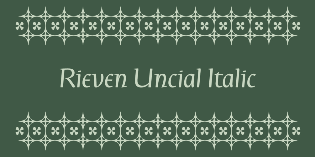 This package includes the fonts Rieven Uncial, Rieven Uncial Italic, and Rieven Ornaments in Webfont formats (9 font files total).