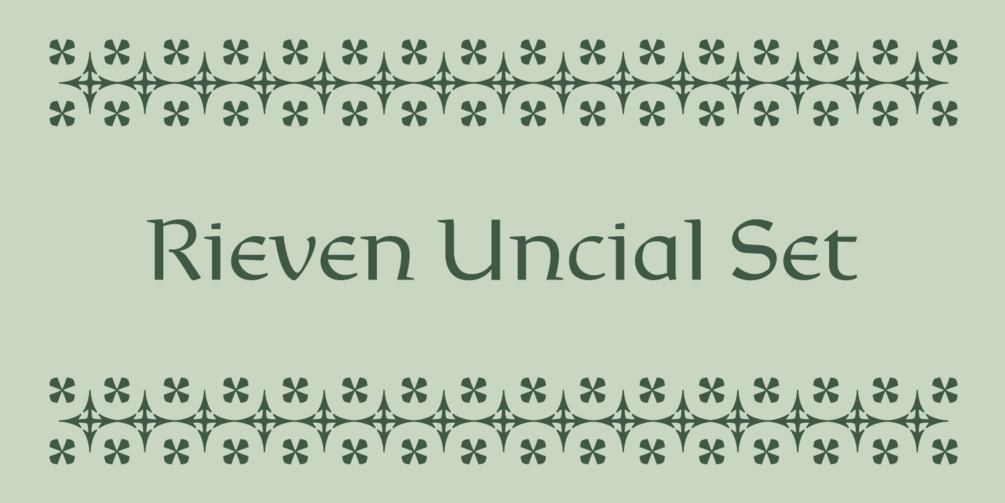 Rieven Uncial looks great on books, packaging, and signage, or anytime there is a need for an exotic feel to text without being overly decorative.